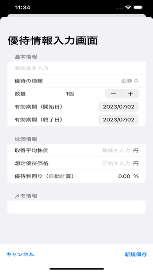 企業の株式を購入し、当該企業の株主優待(金券や割引券など)の情報を一元的に記録、管理したいと考える投資家向けのアプリになります。