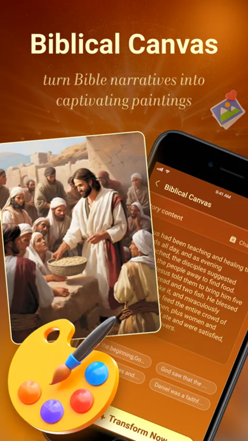 - Biblical Canvas: Harness AI artistry to transmute biblical narratives into visually stunning masterpieces.