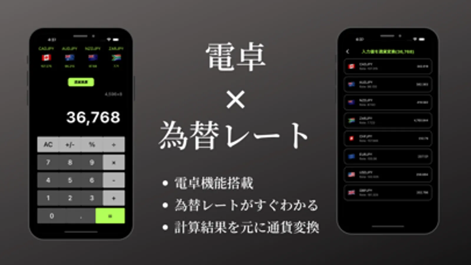「電卓」と「為替変換」を組み合わせた便利なアプリです。