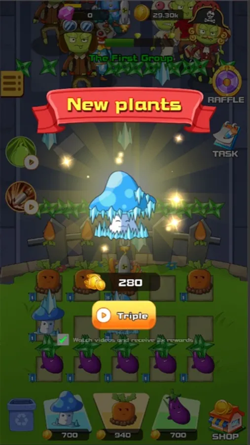 In the game, players will unlock a variety of plants with different functions as the levels progress, totaling up to 90 types. Through continuous synthesis and evolution, players will unlock them, and they will be divided into three types according to their attack methods. Powerful linear single unit damage new plants such as Carrot Warriors. Comprehensive group attack character eggplant ninja. Frozen mushrooms from the frozen plant family, and so on.