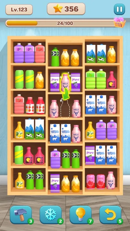 Put your thinking and strategic skills to the test with our clever sorting mechanism. Plan your moves carefully and react quickly to improve your score and complete levels faster. Encounter a variety of goods, including groceries and household items, as you efficiently organize the shelves, clear them, and accomplish tasks within the given time.