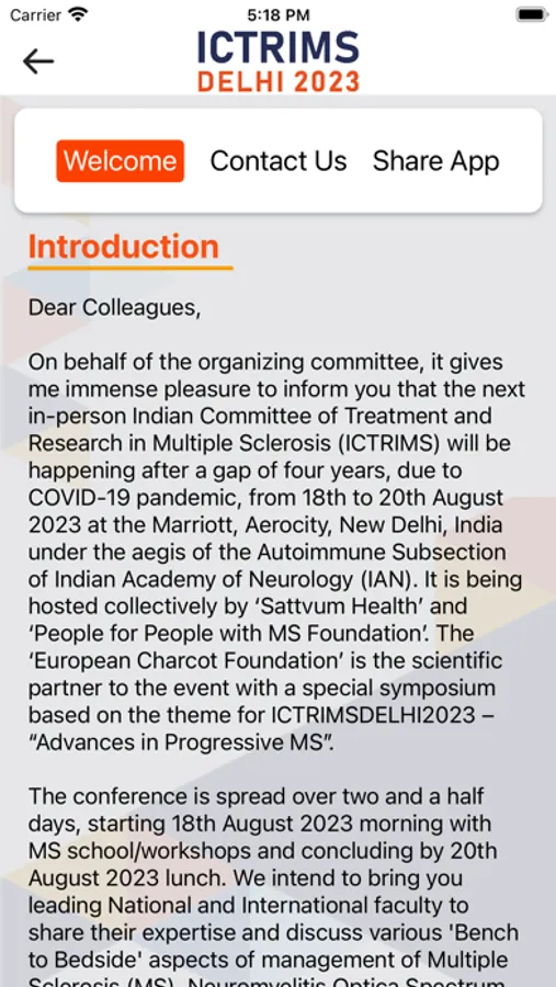 This application is intended for use by participants i.e. delegates, organizers & sponsors to cover the entire gamut of activities beginning from registration, scientific programme updates, details of the conference etc.. This is an interactive app that will help delegates connect with each other as well as the faculty before, during and even after the conference.