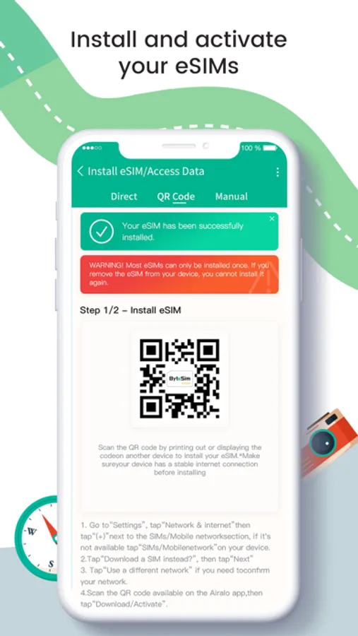 There are two ways to install your eSIM; you can use a QR code or install it manually.