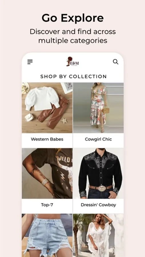 Our user-friendly app ensures a seamless shopping experience. Browse effortlessly through our diverse range of clothing options, discover new arrivals, and find the perfect pieces that reflect your unique style. With E&M Western Couture, you can easily elevate your wardrobe and embrace the fashion you love.