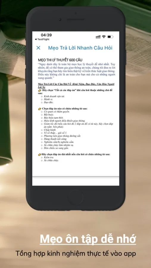 - Mẹo thi lý thuyết và sa hình (thi thực hành).
