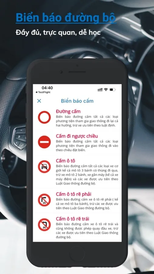 - Tra cứu biển báo đầy đủ giúp bạn tra cứu nhanh chóng biển báo trong khi ôn tập.