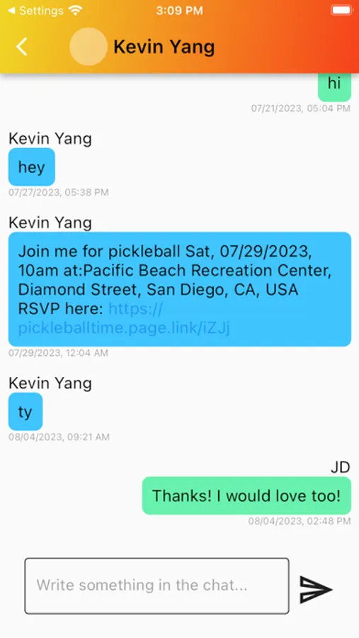 This fast, one-stop app keeps track of all your pickleball events, courts, groups, and friends. This app enables pickleball players to join, schedule, and host pickleball events in their local area. This app enables pickleball players to find other players, chat, and group up in their local area.