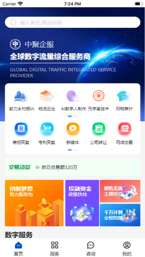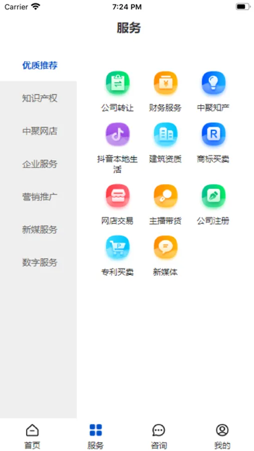 产品覆盖:知产服务、营销服务、财税服务、资质服务、企业法务、品牌策划及特色数字服务等。