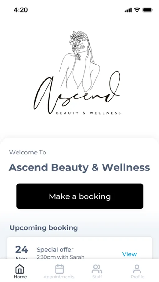 The Ascend Beauty & Wellness app makes booking your appointments and managing your loyalty points even easier. You're just a few taps away from feeling good and looking great!