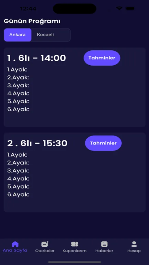 Günlük olarak tahminler şablon şekilde yayınlanır. 6 lı ganyan, 5 li ganyan,sıralı ikili,ikili,çifte oyunları için öneriler alın!