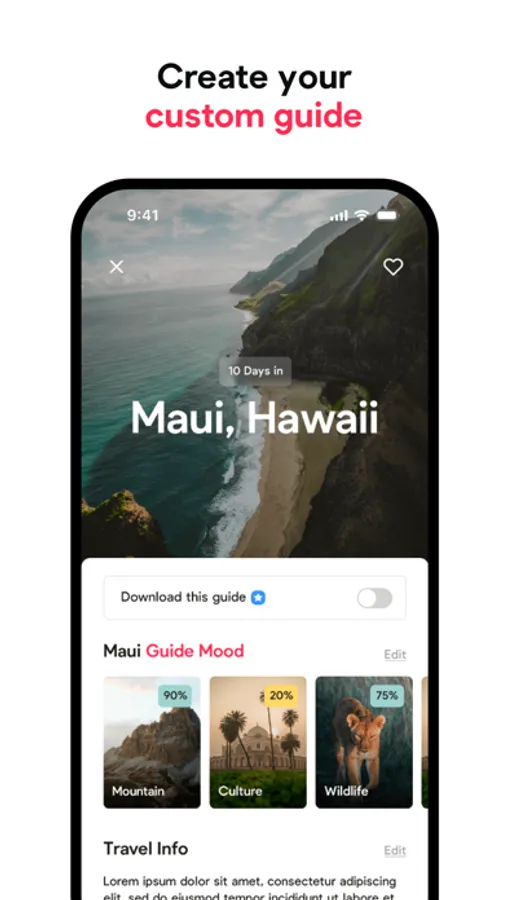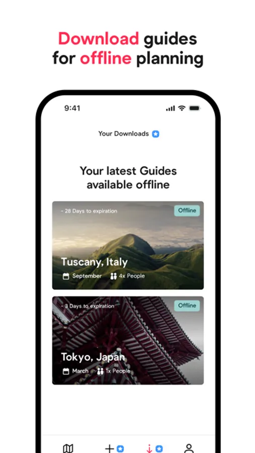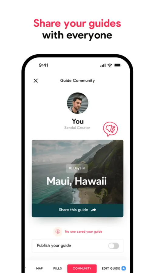 1.Explore: find all your created guides, guides created by the community and search for both creators and travel locations.