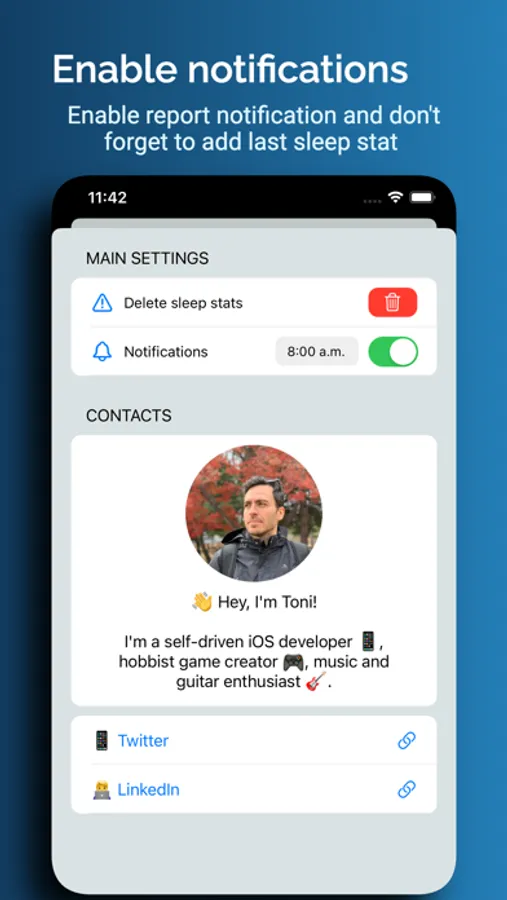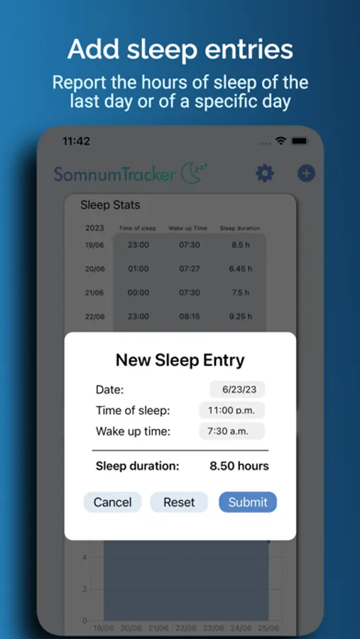 Somnum Tracker is a useful application for reporting and managing daily sleep duration statistics. You can report a specific day on the calendar and activate daily notifications to remind you.