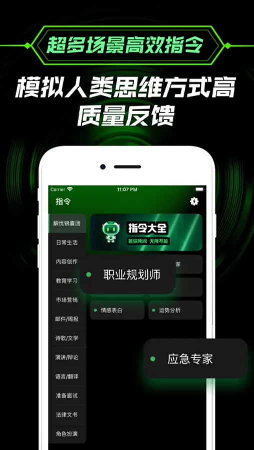 主要特点:当您为创作文案发愁时,它可以帮您创作文案;当您遇到一些困惑时,您可以向它发出指令帮你解惑。