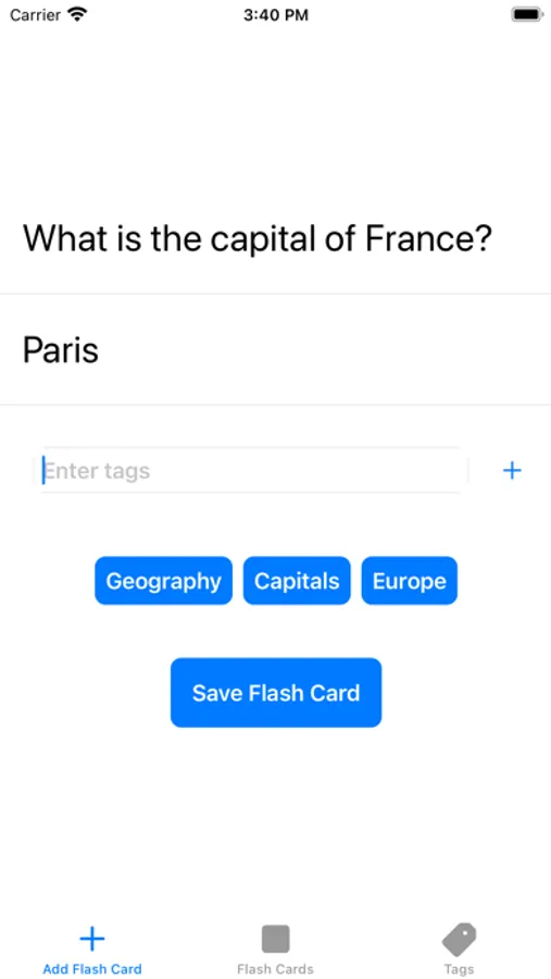 Creating flashcards with FlashTag is simple. Just input your question on one side and the corresponding answer on the other. You can easily categorize your flashcards using tags, making it easy to find specific information when you need it.