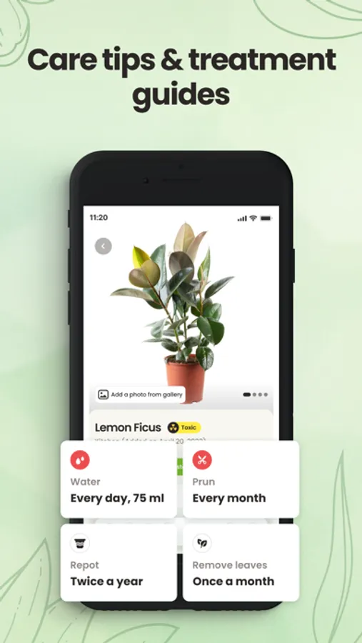 Plant maintenance becomes even more effortless with our Care Plans. Access a plan for nearly any plant species, from common houseplants to exotic varieties. Whether your Aloe Vera needs improvement or you're unsure about how to care for your new Money Tree, easily access comprehensive instructions on watering, fertilization, lighting, and even pruning to help them thrive!