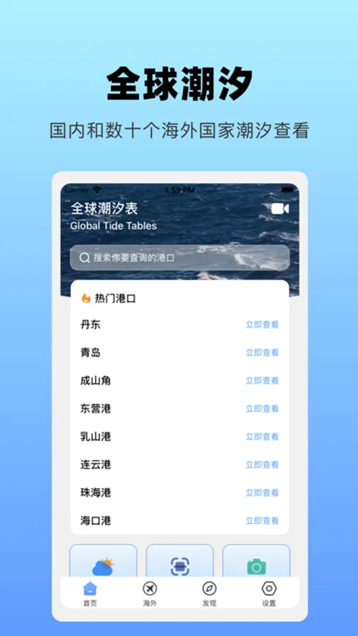 想看潮起潮落的情况吗?在这里国内潮汐和海外潮汐都可以查看!