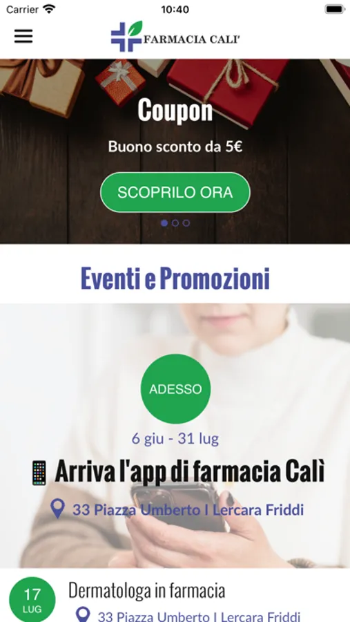 L'App della Farmacia Calì ti permette di avere il tuo farmacista di fiducia sempre a portata di mano con consigli, informazioni, prenotazioni, ordini, richieste di prodotti e servizi in farmacia.