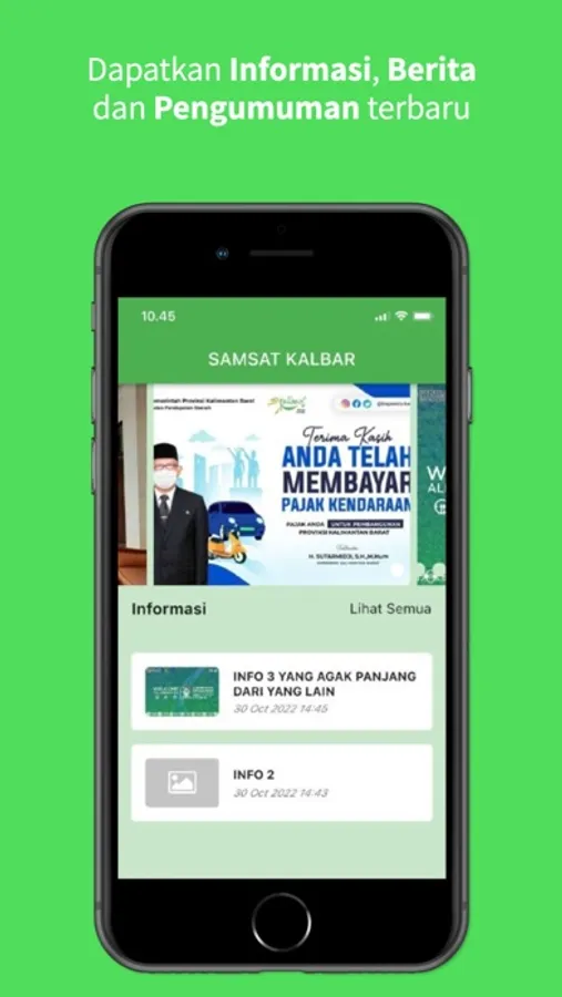 Pajak anda untuk membangun Kalimantan Barat. Periksa informasi Pajak Kendaraan Bermotor (PKB) dan Bea Balik Nama Kendaraan Bermotor ( BBNKB ) serta dapatkan informasi terbaru, Lokasi Gerai dan Samsat Keliling.