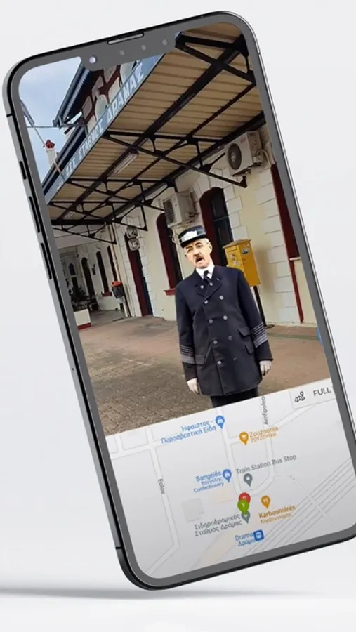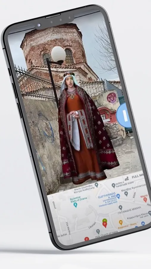 Using your phone's camera, you can view and interact with 10 historical figures from the city of Drama, Greece. These full-body avatars are geo-located at sites around the city where you would have found them in their era.