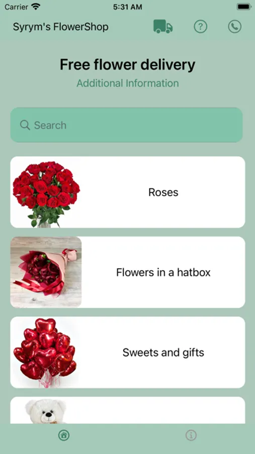 Flowers shop app for flowers purchase and delivery in any destination within Almaty city limits.