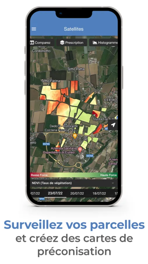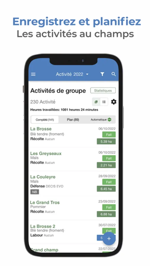Suivez votre registre d’opérations, vos stockes, vos machines, vos finances et effectuez vos opérations d’agriculture de précision.