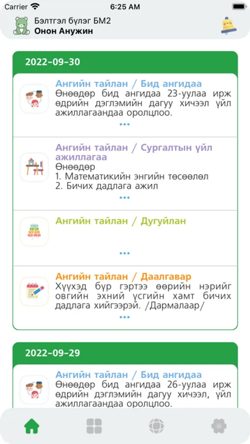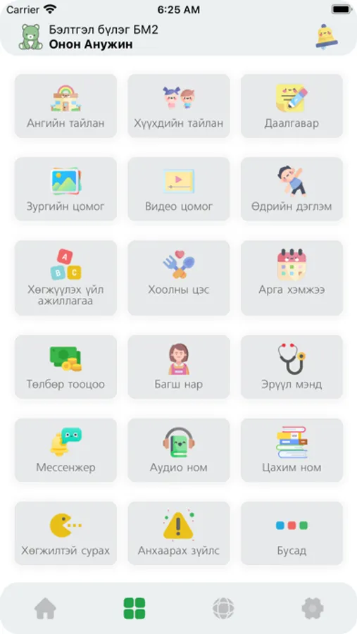 Манай энэхүү аппликэйшн нь хүүхдийн цэцэрлэгийн өдөр тутмын үйл ажилгаанд зориулагдан бүтээгдсэн бөгөөд эцэг эх-багш-цэцэрлэг-хүүхэд гэсэн уялдаа холбоо, хоорондын харилцааг сайжруулах, мэдээ мэдээллийг цаг алдалгүй түргэн шуурхай солилцох зорилготой.
