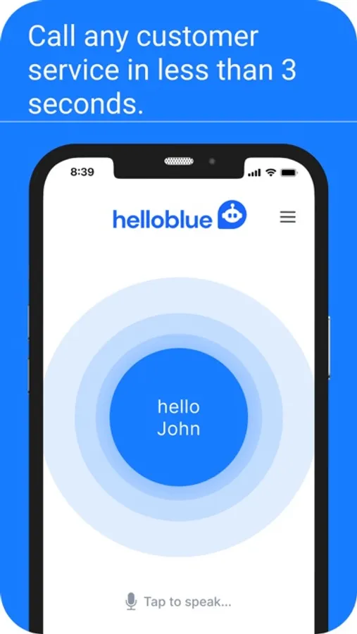 Helloblue is an innovative AI voice assistant app that revolutionizes customer service by seamlessly connecting users to any company's customer support with a simple click of the blue button. With our app, users can quickly and effortlessly reach out to the customer service of various companies, ensuring prompt assistance and streamlined communication.