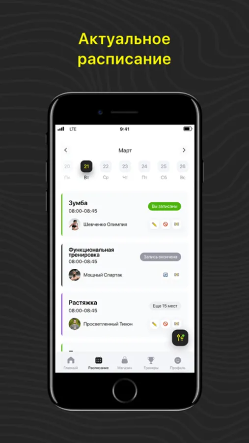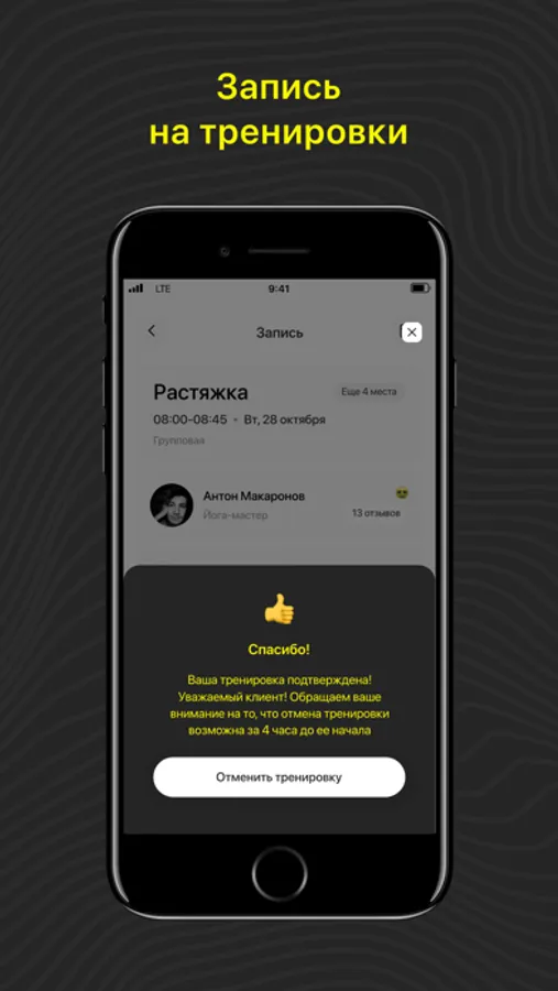Получать PUSH-уведомления о предстоящей тренировке за 3 часа;