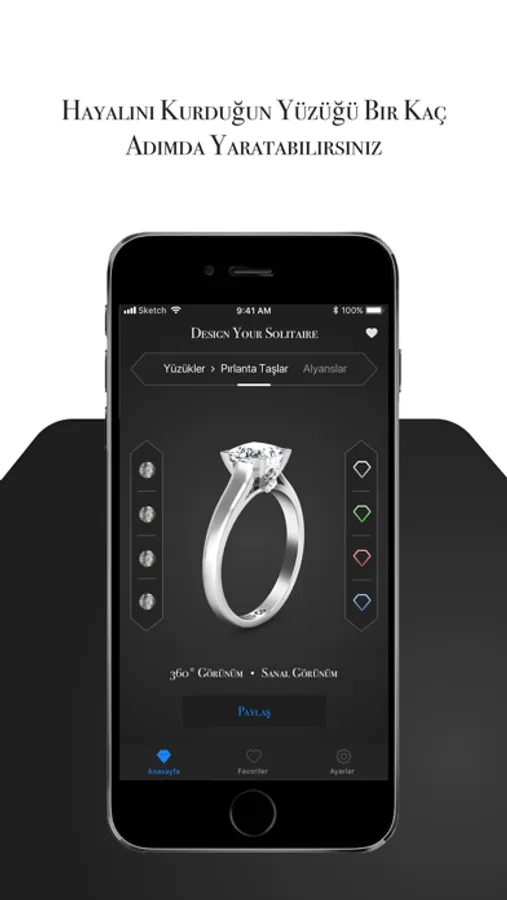 Bir hediye hayal edin! Sahibine özel olarak hazırlansın! "Çok güzel de, peki nasıl olacak?" dediğinizi duyar gibiyiz. Pırlanta Yüzük Tasarla'da sevdiklerinizi mutlu etmek artık çok daha kolay! Uygulamamız üzerinden kişiye özel ürünler tasarlama imkanı sunuyoruz. Beğendiğin ürünü özelleştir.