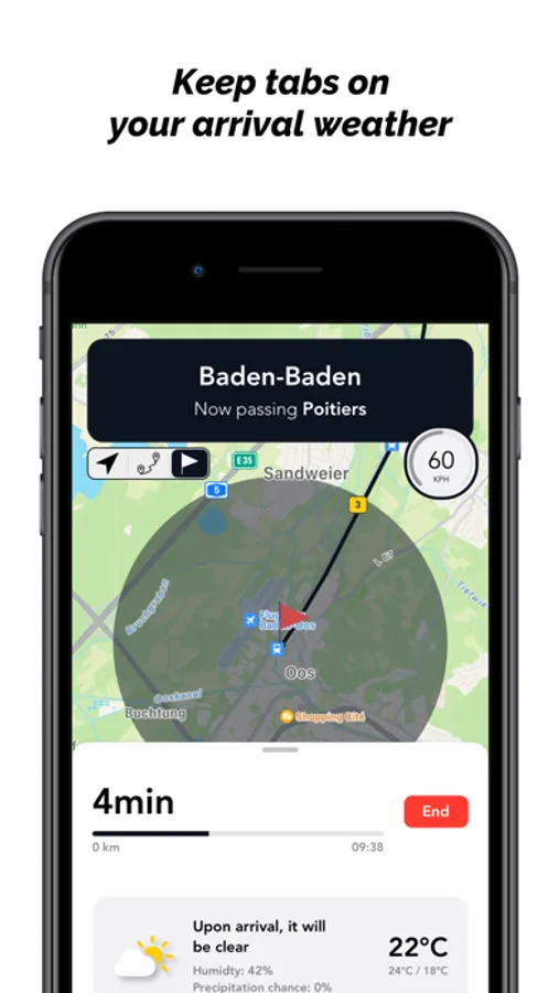 Destinations will tell you where you are currently passing, your arrival time, how long until you’re there, how far away you are, and even your speed!