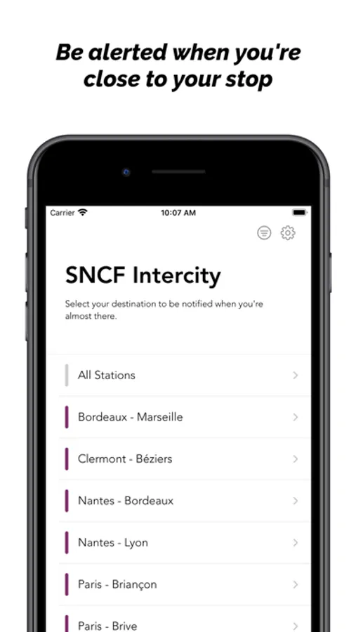 Customize your trip to your liking. Decide how close to your station you want to be alerted and even the notification sound that will play when you’re almost there.