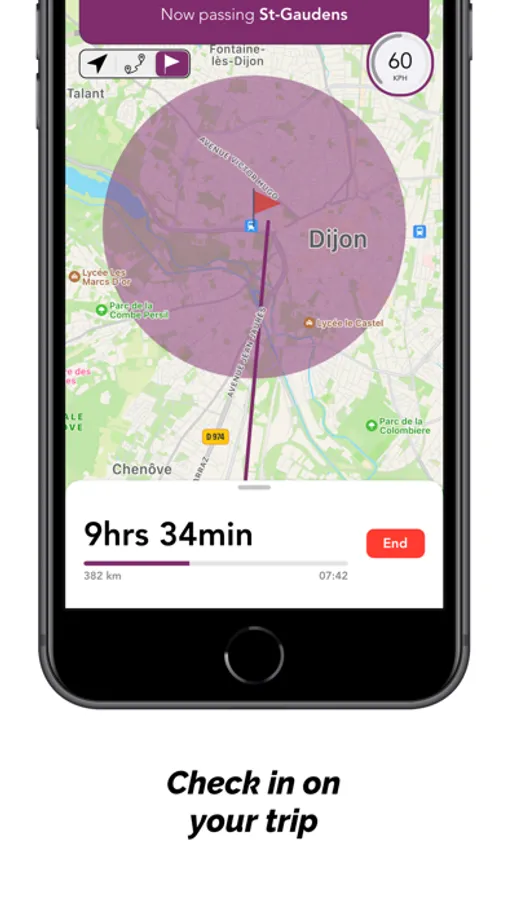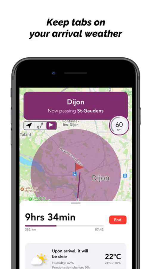 Destinations will tell you where you are currently passing, your arrival time, how long until you’re there, how far away you are, and even your speed!