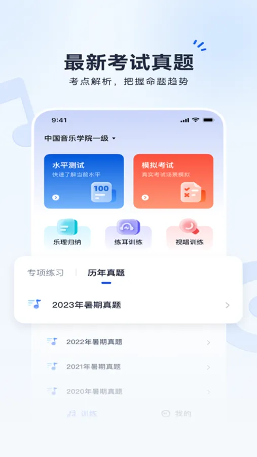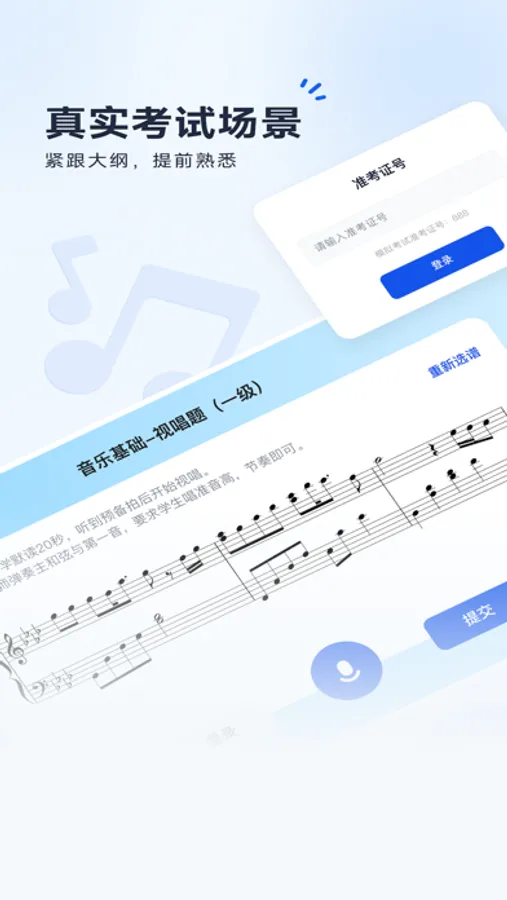 从简单的五线谱识谱到三和弦、七和弦及各种调式的训练,节奏、旋律的视唱,识别音准智能打分,让你迅速提升视唱水平;
