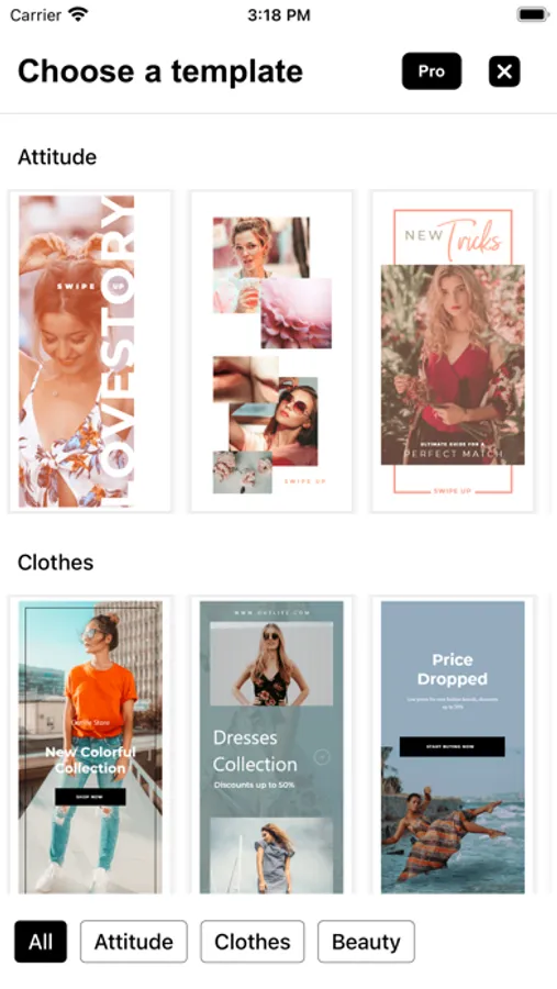1) Templates: The Stories Studio provides you with different templates for decoring your memories.