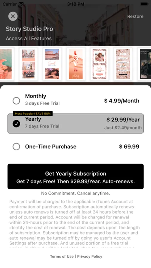 2) Non-Consumable subscription: You can choose a lifetime subscription for $69.99.