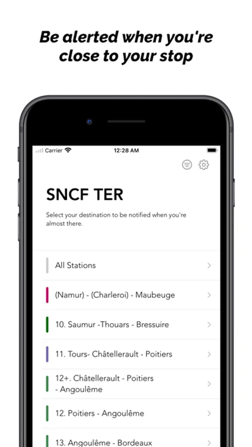 Customize your trip to your liking. Decide how close to your station you want to be alerted and even the notification sound that will play when you’re almost there.