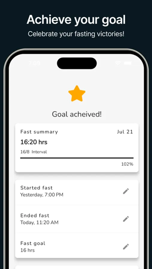 - Easy and intuitive fasting tracking: Start and stop your fasts with a single tap