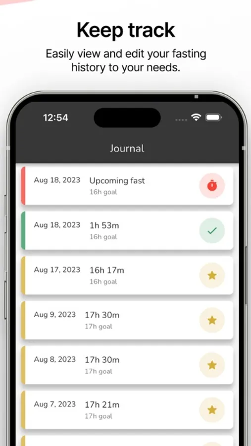 - Comprehensive fasting history: Keep a record of your past fasts for easy reference