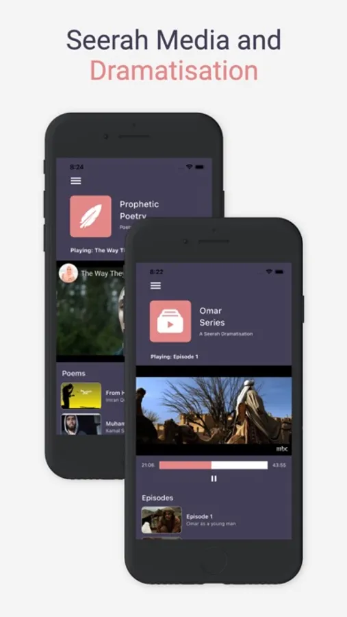 The famous Omar series has been included in the app. This series was co-produced by Qatar TV and MBC and directed by Hatem Ali. It has been provided courtesy of a Creative Commons licence, although it is also available to view in a number of other locations on the internet, but the first 17 episodes have been included here as they pertain to the life of the Prophet Muhammad (pbuh)