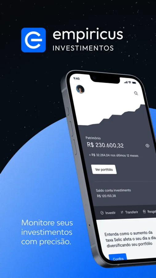 Invista em ações de maneira simples e se torne sócio das maiores empresas do mundo de forma simples e rápida. Sem telas complexas ou um home broker complicado.