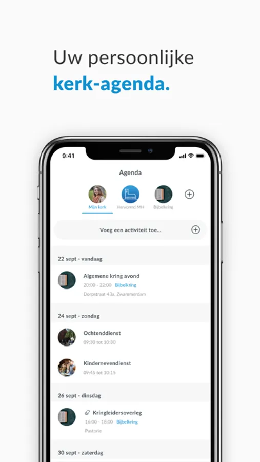 Dankzij onze unieke groepenstructuur helpen wij kerken beter te communiceren. Met de hele gemeenschap, maar ook onderling. U kunt zelf groepen toevoegen en mensen daarvoor uitnodigen. Een slimme timeline zorgt er voor dat iedere gebruiker persoonlijke en relevante informatie ziet.