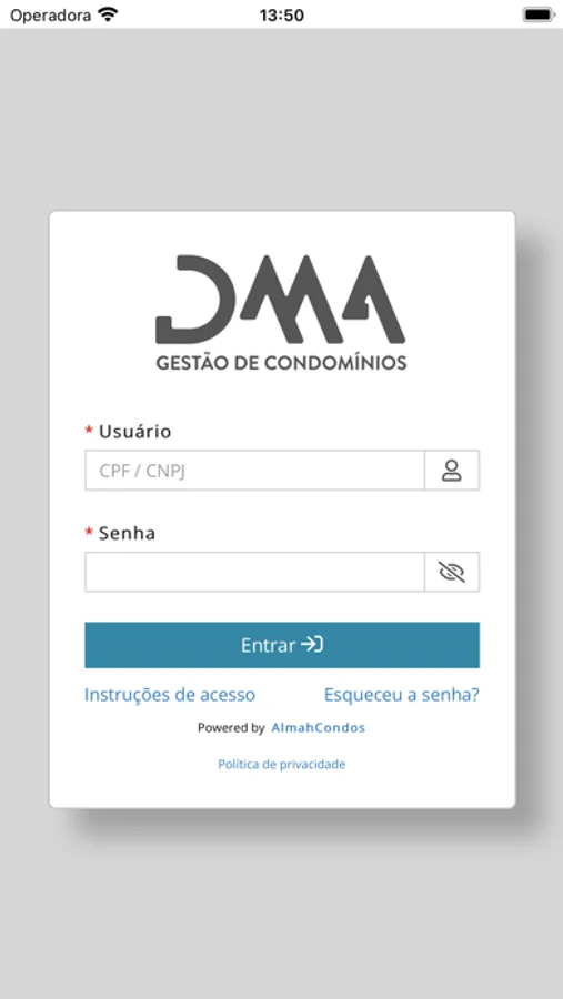 Este aplicativo é exclusivo para usuários da DMA Gestão de Condomínios.