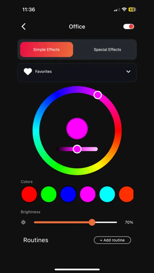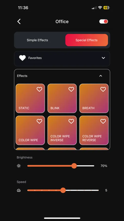 - Modern UI with color, effect, and segment controls