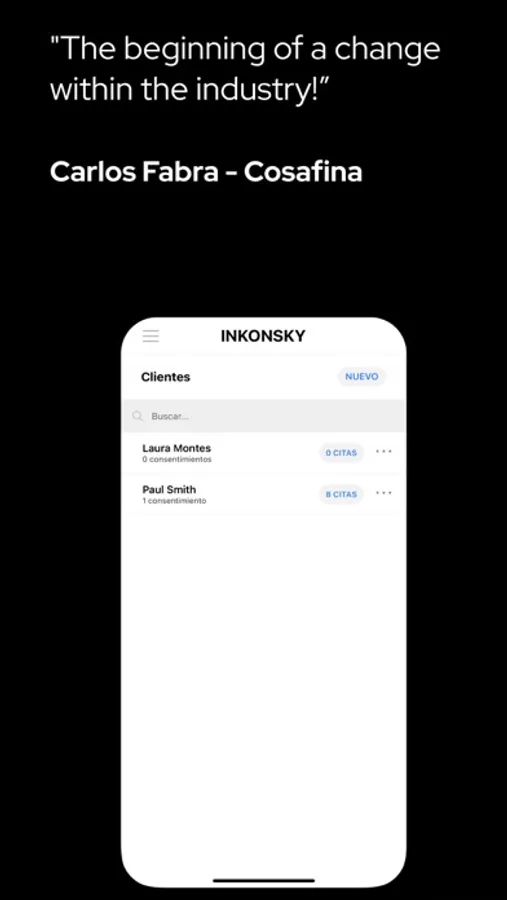 "Por fin una plataforma que nos ayuda en nuestro día a día. Te lo hacen todo más fácil para pedir citas, para los consentimientos, y el calendario es super completo!" - Ivan Casabo, Bunker Tattoo Collective