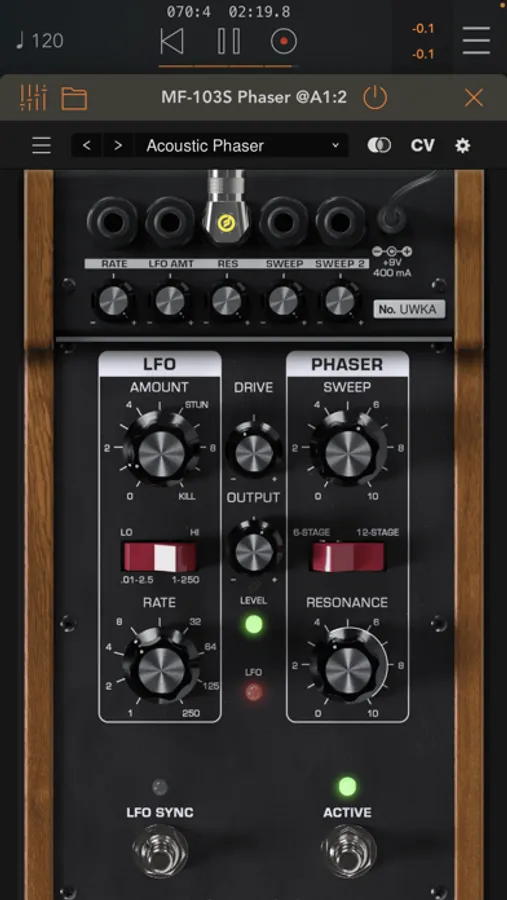 The MF-103 Stage Phaser has been meticulously recreated as the MF-103S, capturing not only the psychedelic enveloping sound of the original, but also the organic way in which the parameters interact to create a musical playing experience.