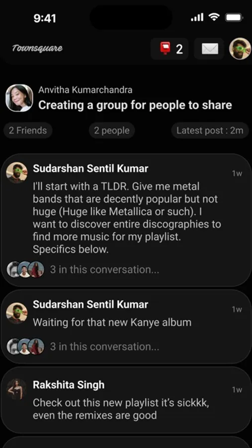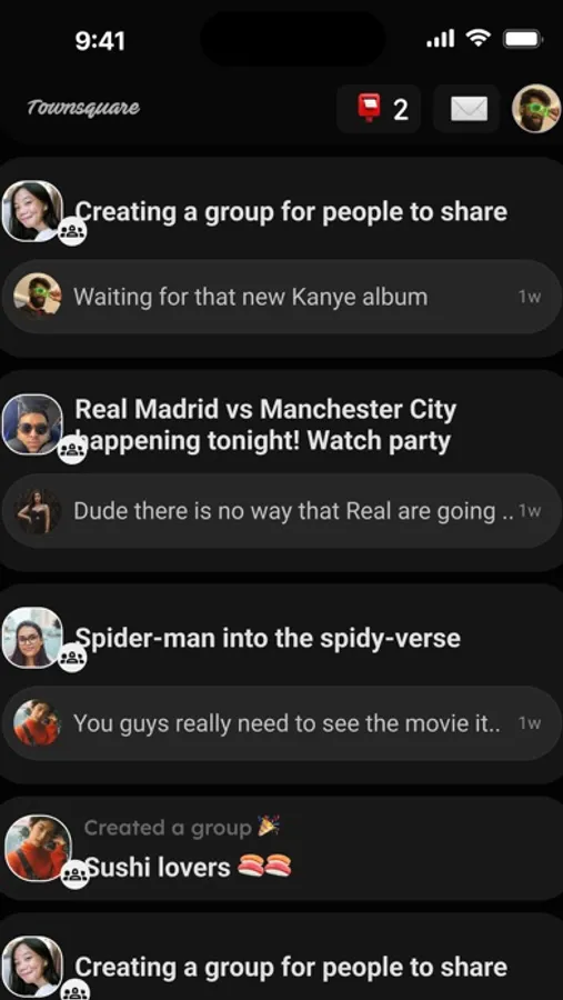 Townsquare is a new way to discover and hang out with people in and around your network. All groups you create spread organically through your friends, and are only visible to the people you’re interested in.