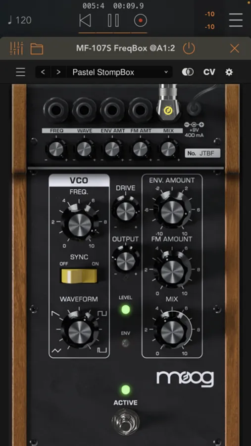 The MF-107 Freqbox, originally introduced in 2007, contained several complete modular synth functions: a voltage-controlled oscillator (VCO) with variable waveshape capable of being hard synced and frequency modulated by the audio input, and an envelope follower which allowed the dynamics of the input signal to modulate the frequency of the VCO. In addition, the amplitude of the VCO was controlled by the dynamics of the input signal, and the VCO could be mixed with the audio input. A direct descendant of the original Moog modular synthesizers, the MF-107 was adapted to process, modulate, and play with inputs ranging from guitar, voice, and synthesizer to any imaginable audio source.