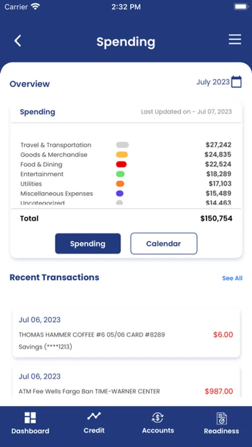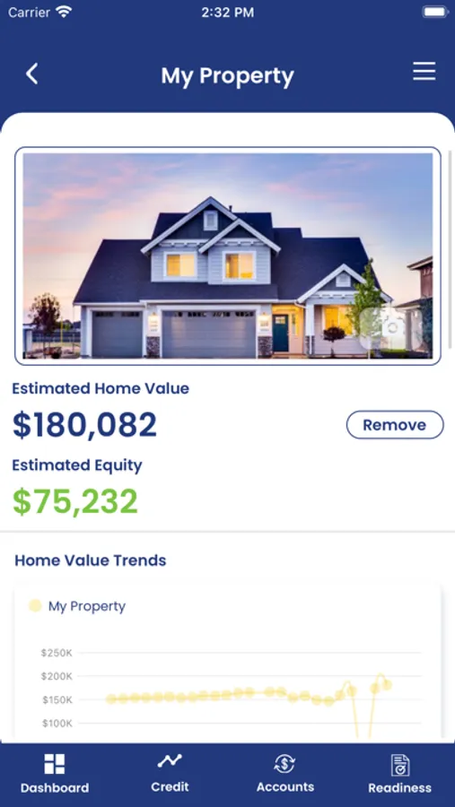 Your HomeJourney dashboard summarizes important financial information such as: account balances, transactions, net worth, budgeting, credit score, cash flow analysis, estimated home value, spending analysis, offers and promotions from your financial institution, and an information center with personal finance articles and videos, all in one place.