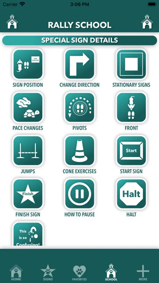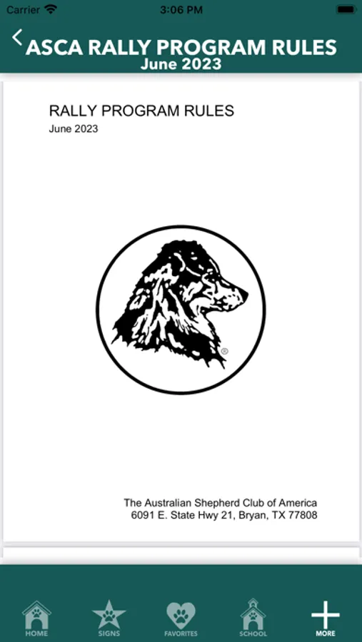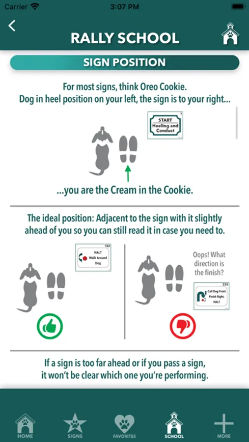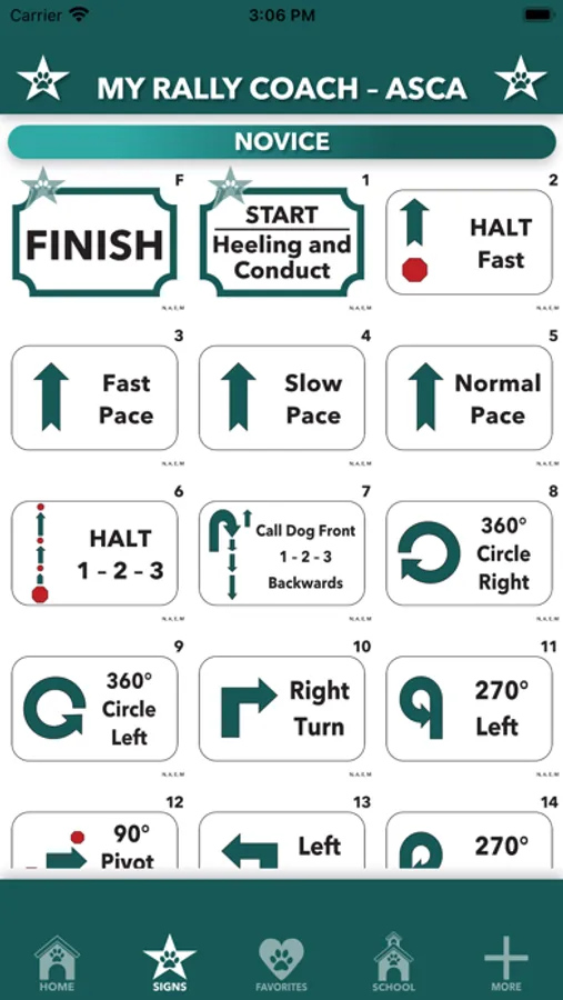 For basic understanding of signs and rules, My Rally Coach ASCA Edition has you covered with up-to-date sign descriptions, a visual indicator for which level and which classes each sign may appear — and so you always have the official ASCA Rally Program Rules Book handy, it’s in there too!