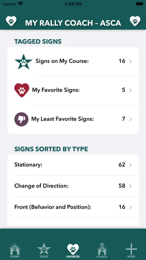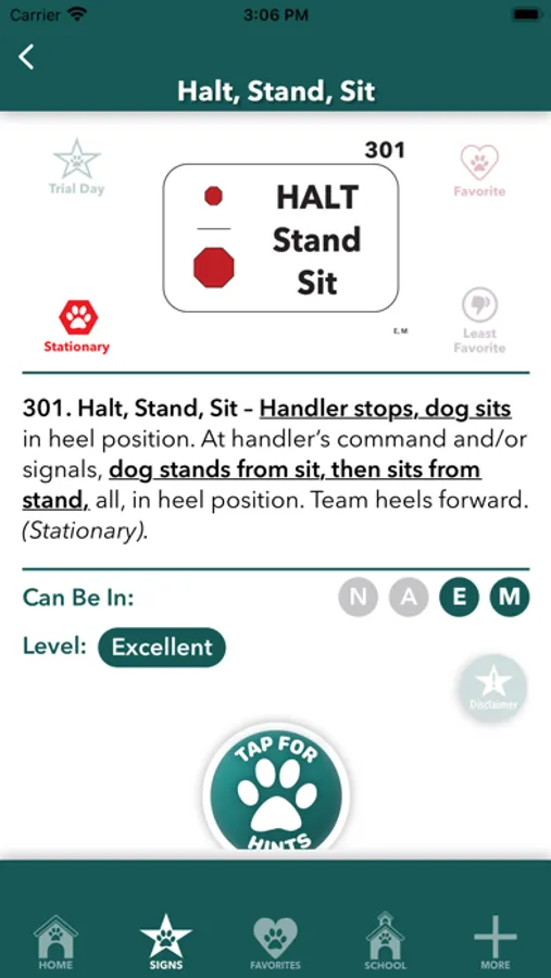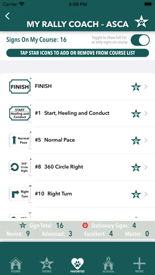 Another feature that’s great for trial day or for training and teaching sessions, each sign can be tagged three different ways to isolate for even more focused attention, “Signs on My Course,” “My Favorites,” and “My Least Favorites.” Additionally, Signs on My Course includes a total sign count, a tally of signs from each level, and how many stationary signs are on your course.